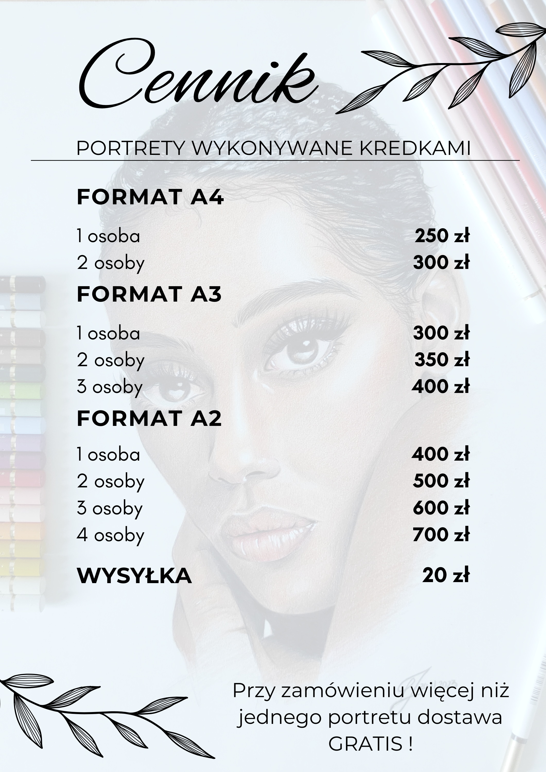 Portrety wysyłam nieoprawione. Każdy rysunek jest starannie zapakowany w ozdobną tubę kartonową, która następnie trafia do odpowiedniego pudełka ochronnego.